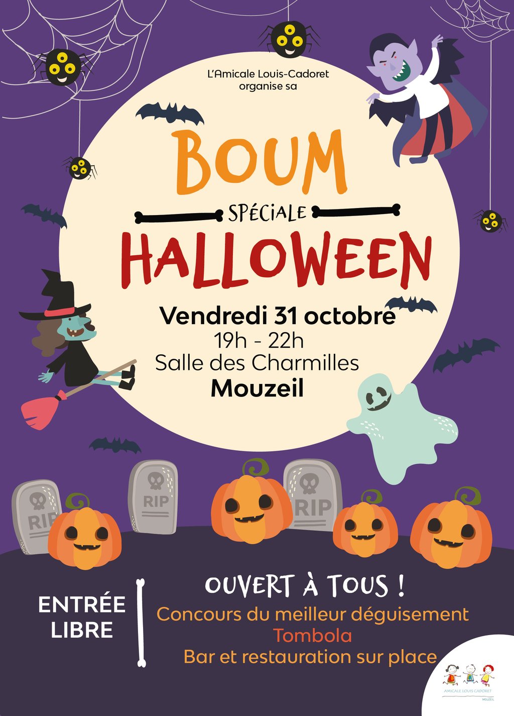 L'amicale de l'école Louis Cadoret vous donne rendez-vous vendredi 31 octobre pour sa boum spéciale Halloween !