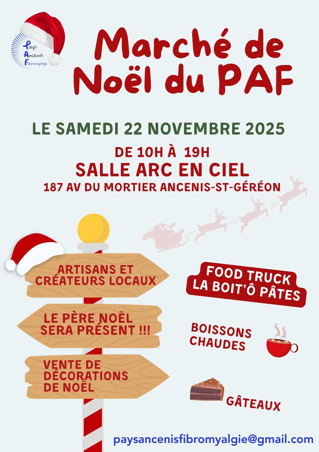 L'association Pays Ancenis Fibromyalgie organise pour la deuxième année consécutive son marché de Noël le samedi 22 novembre 2025 de 10h à 19h Salle Arc en Ciel, 187 avenue du mortier Ancenis Saint Géréon.
