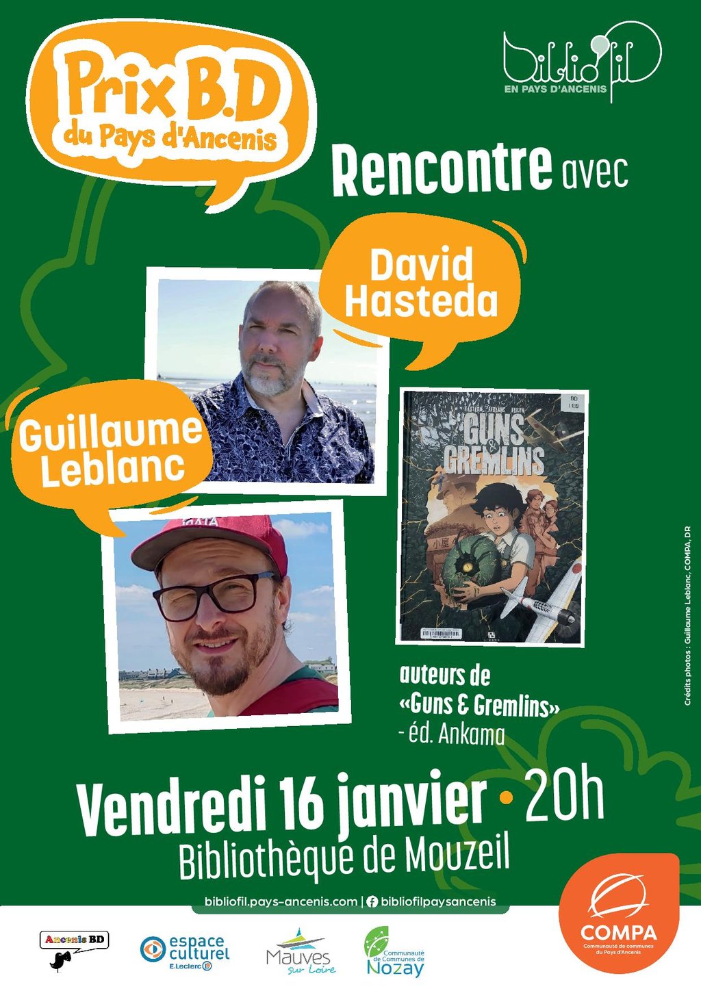 Dans le cadre du Prix BD du Pays d’Ancenis, la bibliothèque de Mouzeil propose une rencontre avec Guillaume Leblanc, l’illustrateur de la bande dessinée « Guns & Gremlins » qui fait partie de la sélection cette année. Échanges suivis de dédicaces.