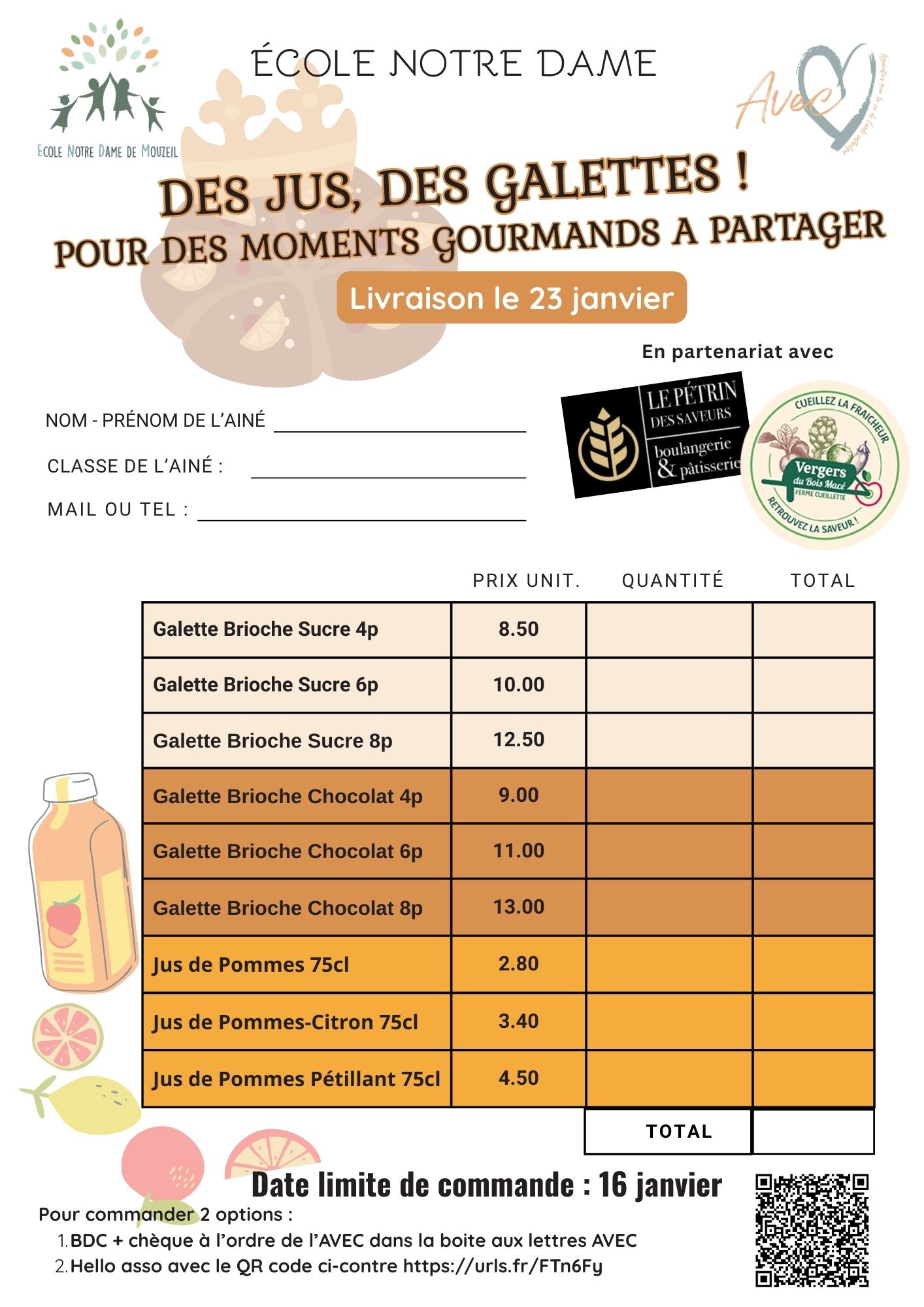 VENTE DE JUS DE FRUITS ET DE GALETTES DES ROIS ! đź‘‘
