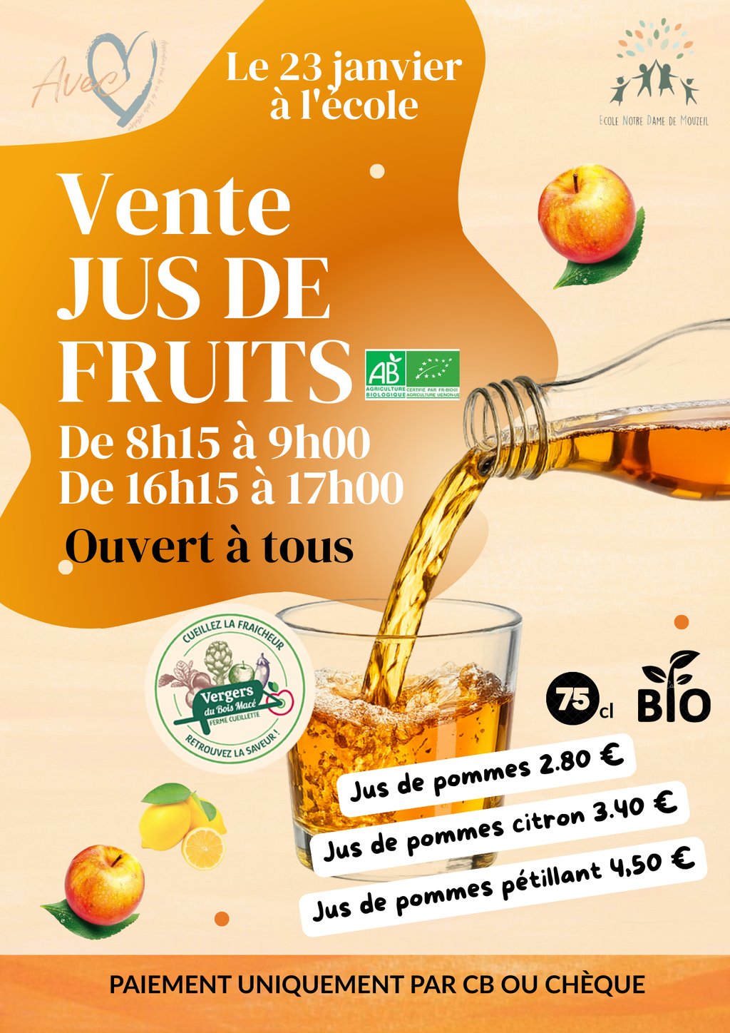 🍎 VENTE DE JUS DE FRUITS BIO À L’ÉCOLE NOTRE-DAME DE MOUZEIL !