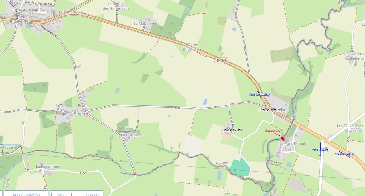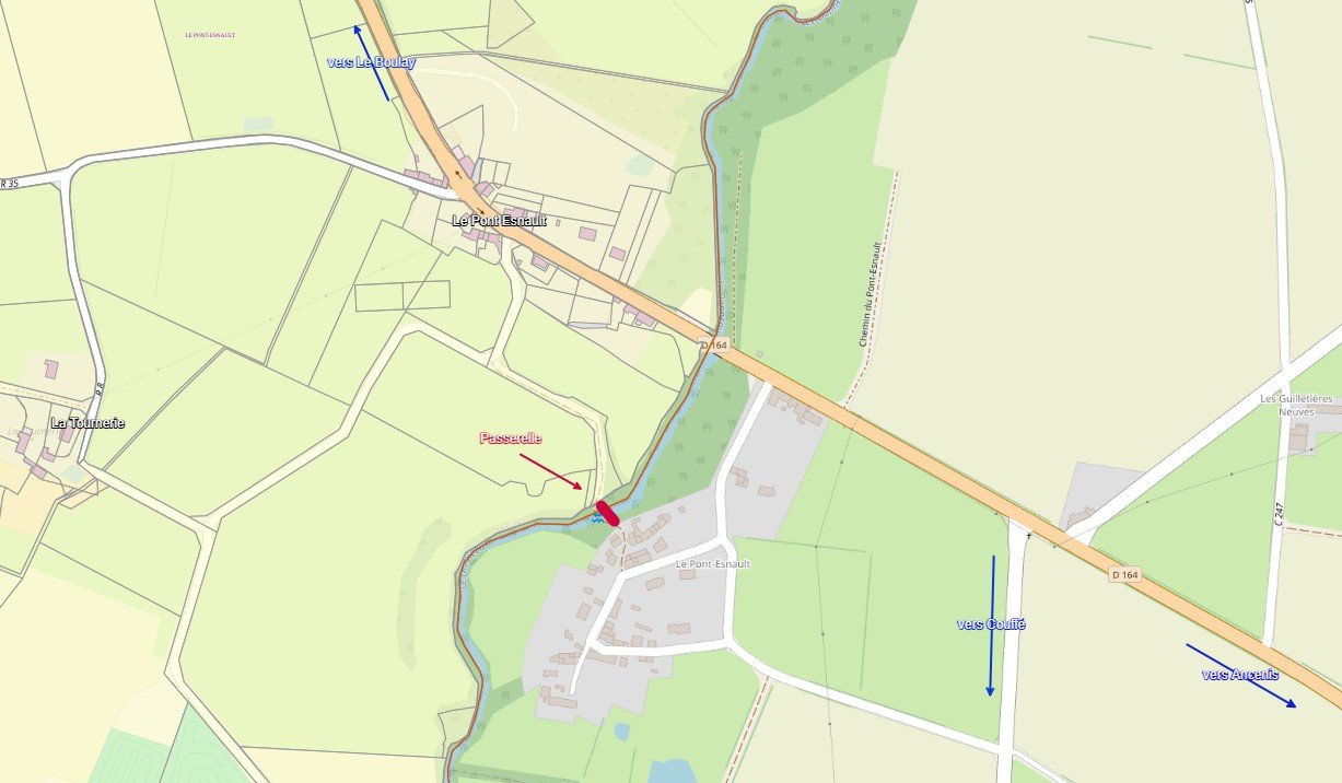 Elle est située au Pont Esnault, accessible par un chemin d'exploitation, et permet de traverser le Donneau pour rejoindre le réseau de liaisons douces de la commune de Couffé.