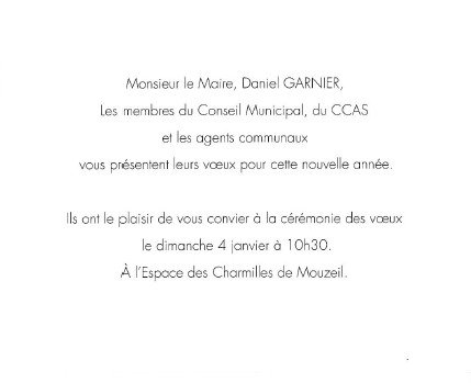 Monsieur le Maire et les membres du Conseil Municipal vous invitent à la traditionnelle cérémonie des vœux pour cette nouvelle année 2026, le dimanche 4 janvier 2026 à 10h30 à la salle des Charmilles.