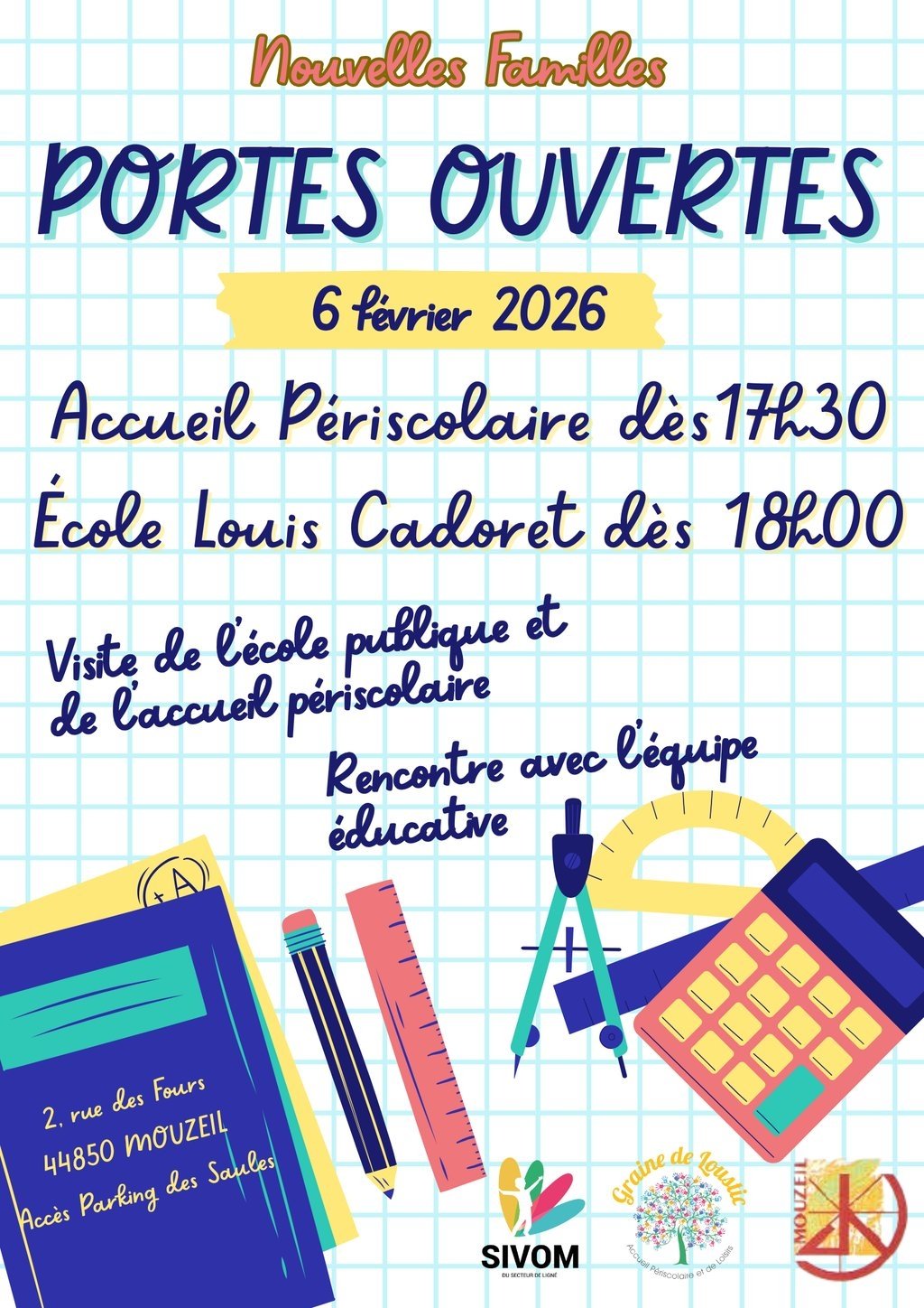 Rentrée 2026 : Portes ouvertes pour les nouvelles familles à l'école Louis Cadoret et à l'accueil périscolaire.